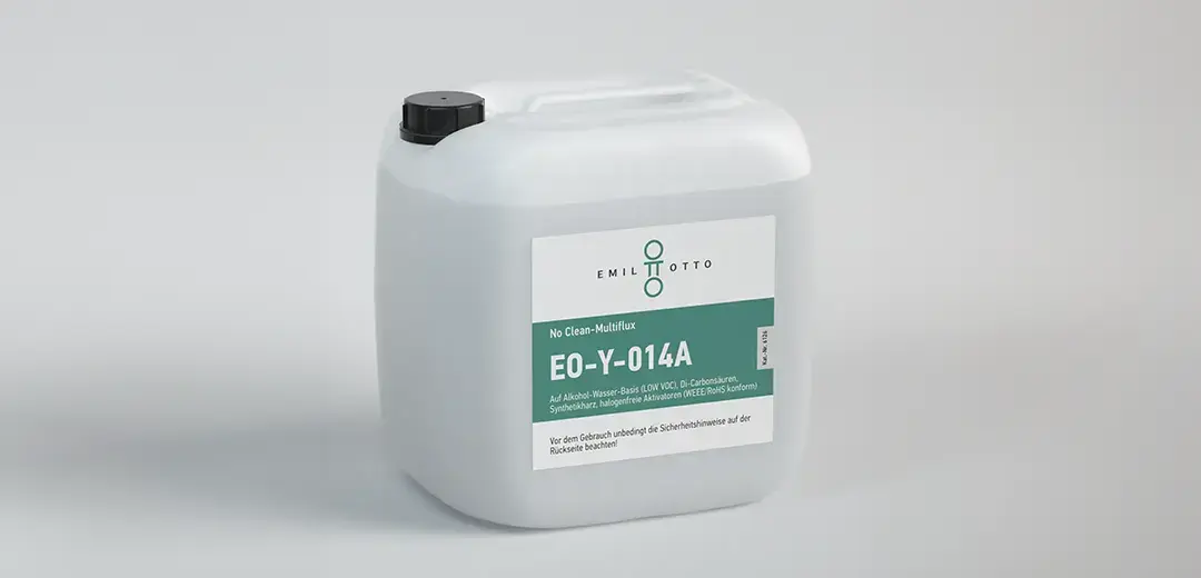 Das Flussmittel EO-Y-014 kann hier eine Alternative darstellen, denn aufgrund des geringeren Alkoholanteils unterliegen es nicht so stark den momentan steigenden Alkoholpreisen. EO-Y-014 enthält darüber hinaus spezielle, alkoholische Additive zur Stabilisierung und Verbesserung der Trocknungszeiten im Vergleich zu herkömmlichen Flussmitteln auf Wasser- oder Teilwasserbasis. Gerade auch durch die besondere Auswahl der alkoholischen Additive ist es Emil Otto gelungen, dass EO-Y-014 trotz eines Alkoholanteils von 15 % nicht als Gefahrgut eingestuft wird.