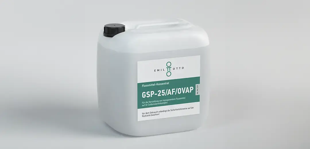 "After the fluxes in the GSP series proved to be very successful on the national market, we also received an increasing number of enquiries from abroad. However, it turned out that the freight costs for overseas shipments sometimes significantly exceeded the value of the goods," explains Markus Geßner, Head of Marketing and Sales at Emil Otto GmbH. As these conventional fluxes are hazardous goods as defined by transport regulations, requirements had to be met that made the product even more expensive. Shipping by air freight was also impossible, as the fluxes may only be packed in small containers. To overcome these problems, Emil Otto developed the flux concentrate GSP-25/AF/OVP, which is suitable as a solution for spray flux application. A complete package consists of one granulate, which is sufficient for 20 litres of flux.
